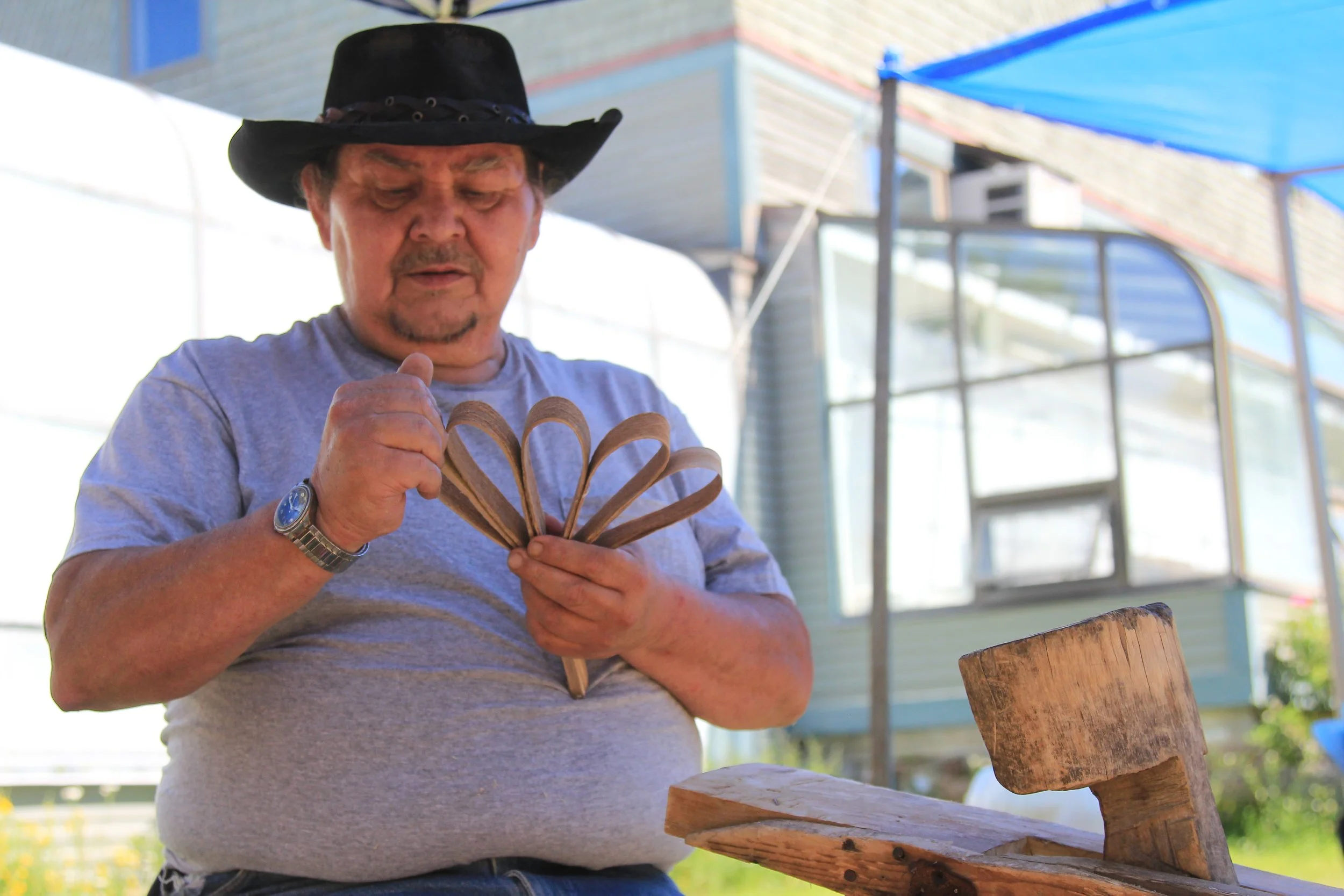 Eldon Hanning of the Mi’kmaq Nation is well known for his utility baskets. A master of ash preparation, Eldon will demonstrate the traditional Micmac method of pounding and splitting ash, which differs greatly from the techniques of the Penobscot and Passamaquoddy ash-pounders. A board member of the Maine Indian Basketmakers Alliance, Eldon has taught hundreds of members of each of the Wabanaki tribes how to weave potato baskets-a basket which the Wabanaki are well known for.